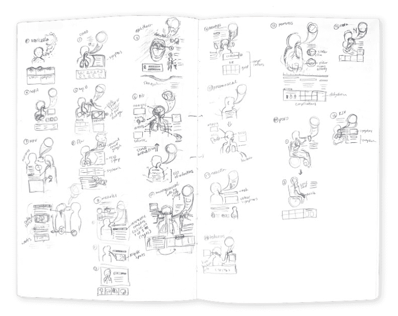 The impacts of vaccines often go unseen– from the millions of deadly infections prevented each year to countless outbreaks quietly averted before they could begin. With the success of routine childhood vaccination, many devastating diseases that were once common became nearly unheard of, yet face a risk of resurgence as vaccination rates fall. Through medical illustrations and graphics, this visual health education tool aims to increase vaccine confidence by illustrating the risks of vaccine-preventable diseases and making vaccine information accessible for young parents of varying health literacy levels.