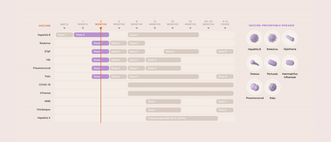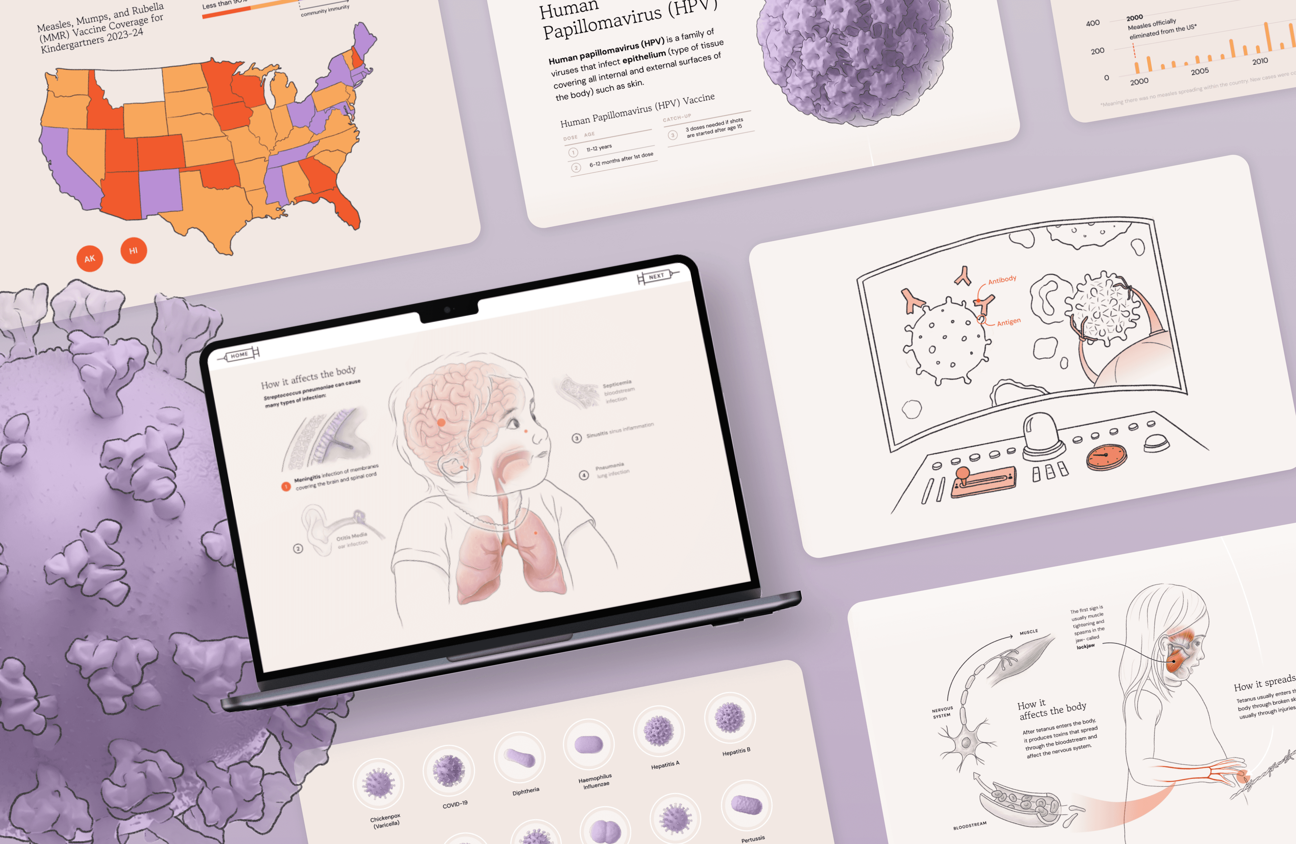 An interactive illustrated guide to childhood vaccines and the diseases they prevent