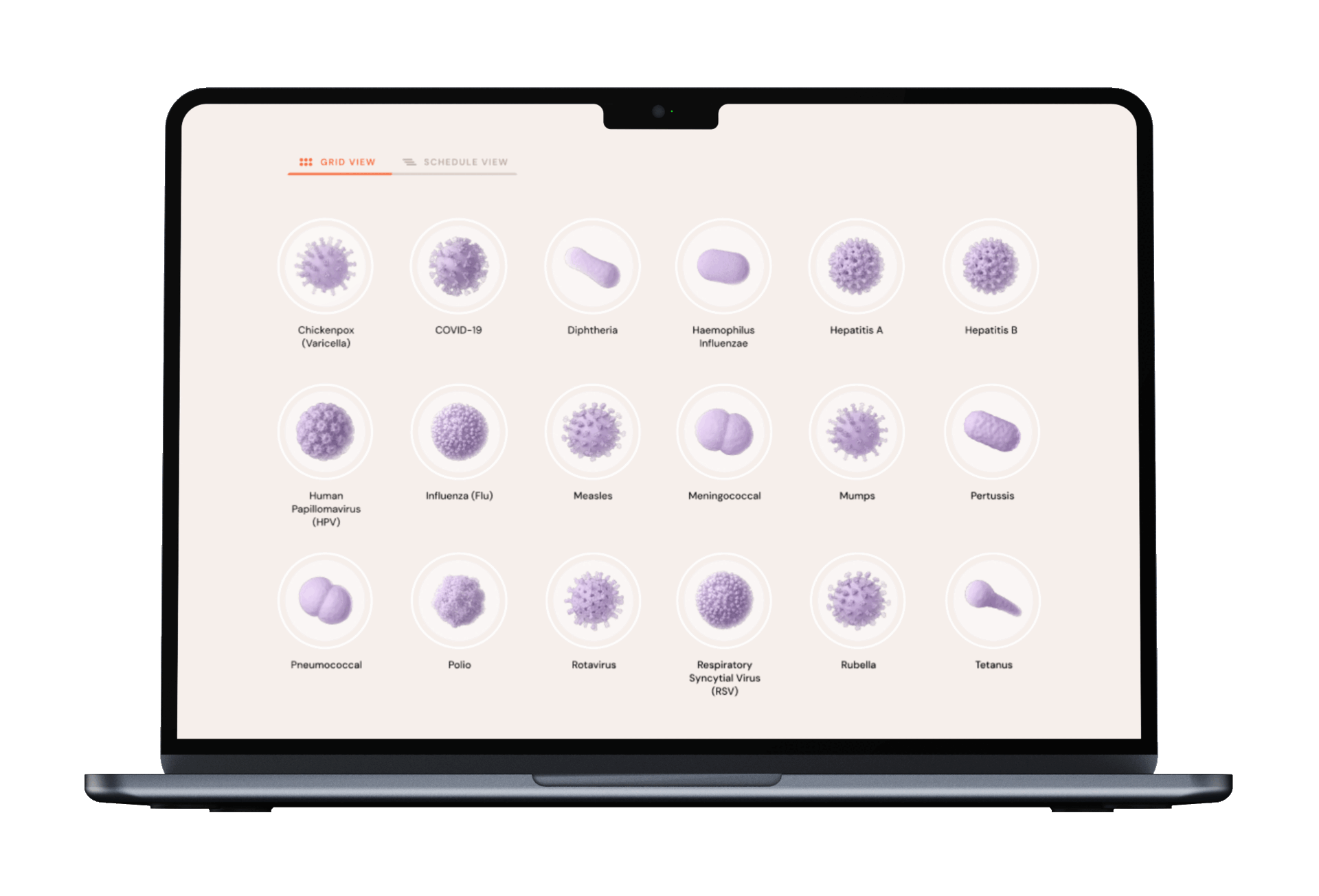 Interactive immunization schedule filters diseases by recommended vaccination age